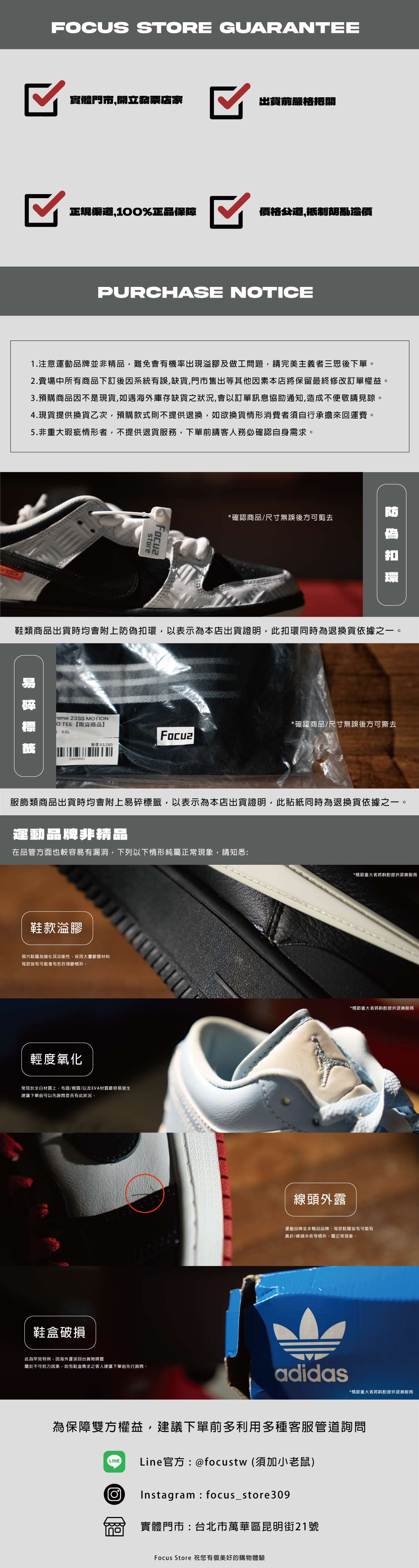 📌賣場內所有商品若下訂後價格調整或因系統有誤,缺貨,門市售出等其他因素Focus Store將保留最終修改訂單權益。