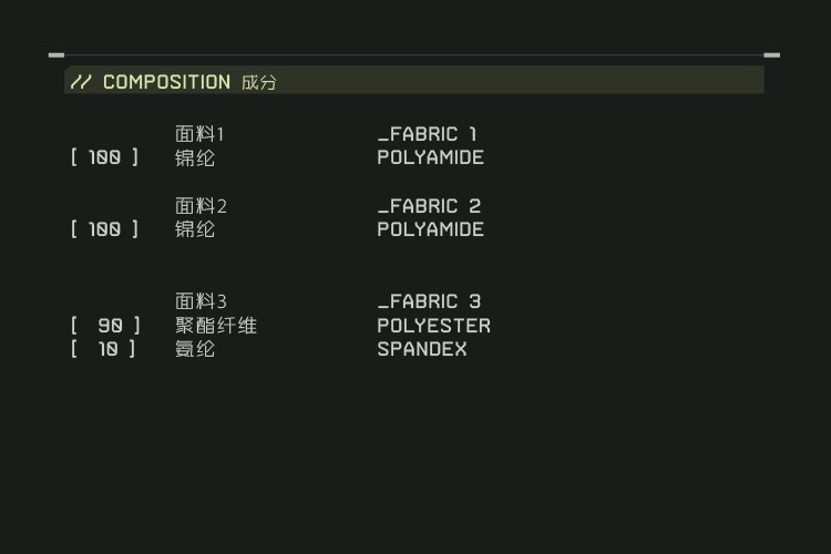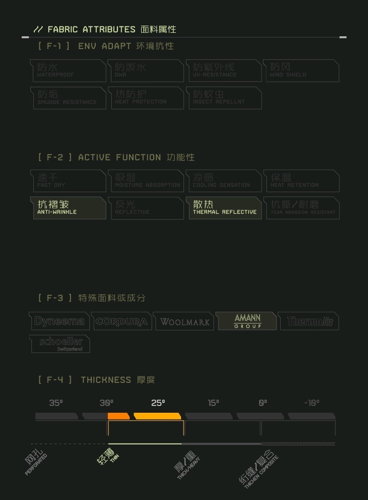 _服裝部分面板採用EDGEO-TEX所研發之REFLECTAGLIDE™奈米金屬尼龍面料。